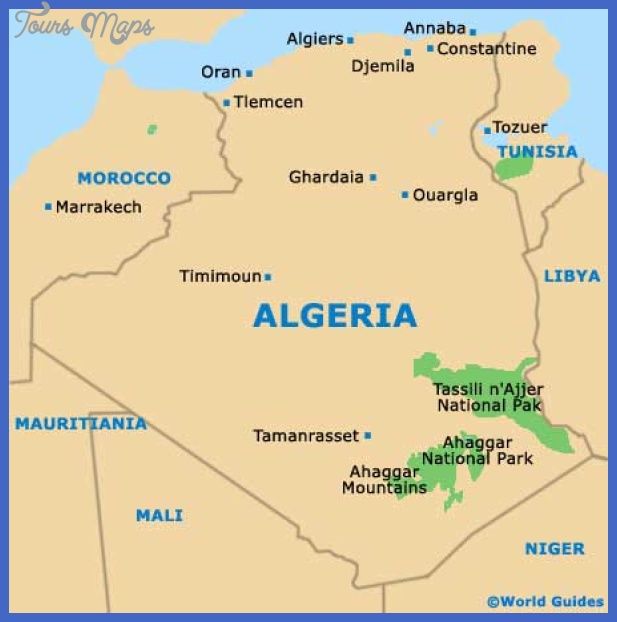 Die Hauptstadt Algier liegt im Norden des Landes am Mittelmeer. Eine ihrer Hauptattraktionen ist die Kasbah von Algier, ein historisches Viertel, das zum UNESCO-Weltkulturerbe gehört und mit engen Gassen, osmanischen Palästen und Panoramablicken auf das Meer besticht. Algier ist das politische, wirtschaftliche und kulturelle Zentrum des Landes. Französische Kolonialbauten prägen noch heute viele Viertel.