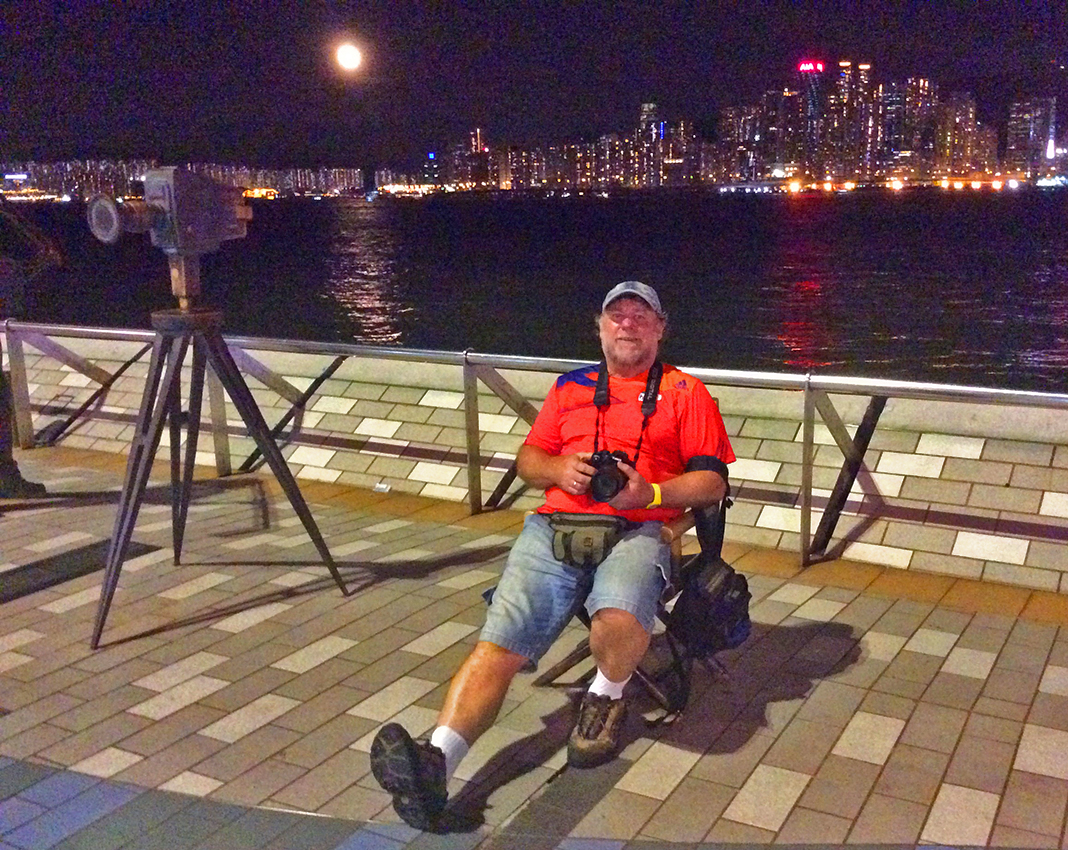 We are starting our night tour at the “Avenue of Stars”, Hong Kong’s counterweight to Hollywood with hand- and footprints of the stars of the world of cimema.