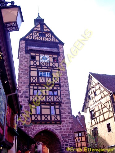 com os pórticos de entrada de Riquewihr.