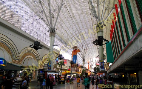 Es ist diese Straße, wo Tausende von Menschen Tag und Nacht unterwegs sind. Hier begegnen Sie Elvis Presley, Mickey Mouse, Spider-Man, und so weiter und so fort… Auch gibt es halbnackte Frauen, die für nächtliche Unterhaltungen aller Art werben… Es gibt auch diese überdachte Straße, Fremont Street, der Stadtteil, der als “Old Downtown” bekannt ist, dort wo damals das Casino-Fieber begann. Erich besuchte Las Vegas im Jahr 1976 und der geschäftigste Teil der Stadt war genau dieses Viertel. Er war extrem beeindruckt von der Entwicklung von Las Vegas. Ich empfehle die Fremont Street nachts zu besuchen, wenn die riesigen Deckenmonitore beleuchtet sind.