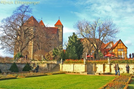 O castelo Quedlinburg tem cerca de 1.000 anos de idade e a cidade nunca foi destruída durante guerras ou sofreu com grandes incêndios, por isso, é tão bem preservada. Algumas edificações estão inclinadas, devido terem sido construídas em um solo relativamente “macio” formado principalmente de arenito.