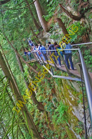 há o passeio pelas passarelas onde você caminha entre o topo das árvores, fantástico! A entrada do parque custa 41 dólares canadenses (em torno de R$ 116,00). Sim, é caro, mas, a América do Norte é cara!!!