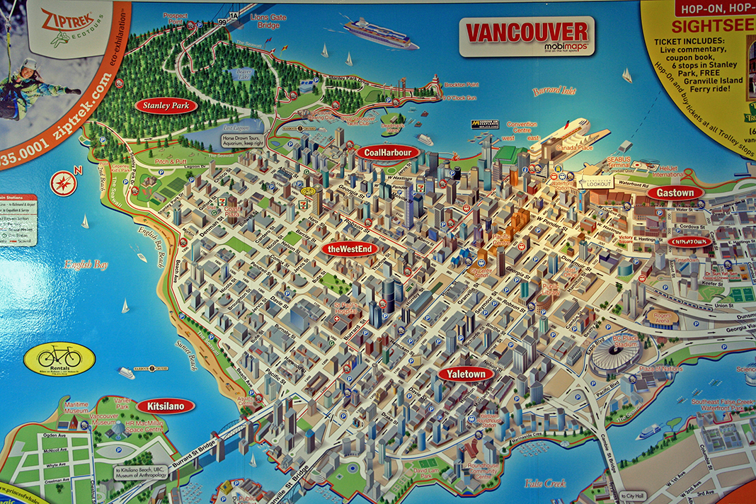 Erich und ich glauben, dass es immer die beste Möglichkeit ist, bei einem ersten Besuch relativ einfach, einen ersten Überblick über die Stadt zu bekommen. In diesem Fall war nur ich zum ersten Mal in Vancouver, denn Erich war schon dreimal in der Stadt und erzählte mir, dass sie 1976 noch charmanter war.