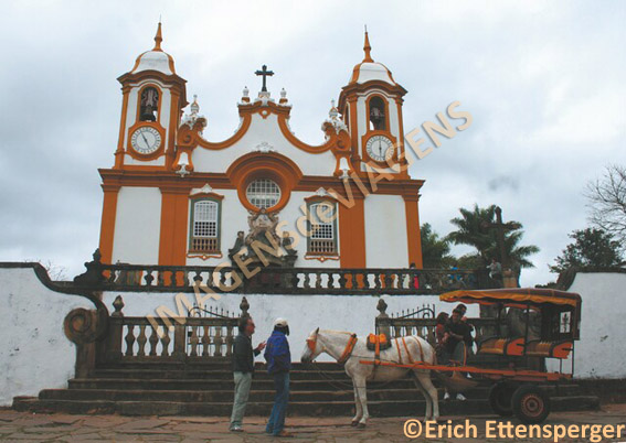 sendo que o frontispício* dessa igreja foi um dos últimos trabalhos do grande Aleijadinho. Além desses monumentos há outros edifícios interessantes como a Capela do Bom Jesus da Pobreza, o Chafariz de São José, dentre outros.