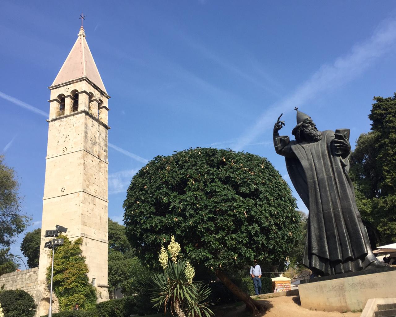 “Split, cidade onde Diocleciano, imperador romano, que era daqui mandou construir um palácio que hoje está inserido na cidade, inclusive o seu mausoléu, que hoje é uma catedral católica” (o Complexo Histórico de Split com o Palácio de Diocleciano é tombado pela UNESCO, desde 1979).