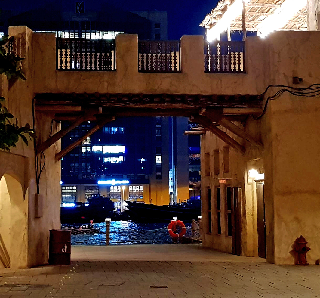 De lá avistamos o canal Dubai Creek, as embarcações nos seus mais variados modelos, algumas bem estilosas, outras mais simples que remetem ao passado provinciano da cidade: afinal, a Dubai moderna tem apenas 30 anos! Avistamos, ao longe, a grande moldura – Dubai Frame, a maior moldura do mundo.