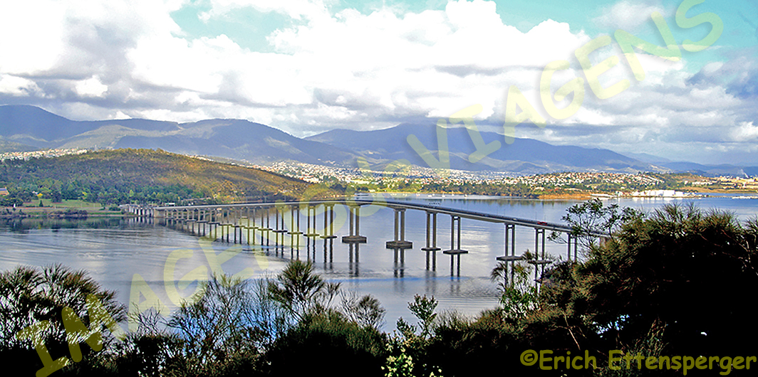 Um dos cartões postais de Hobart é a Ponte da Tasmânia.
