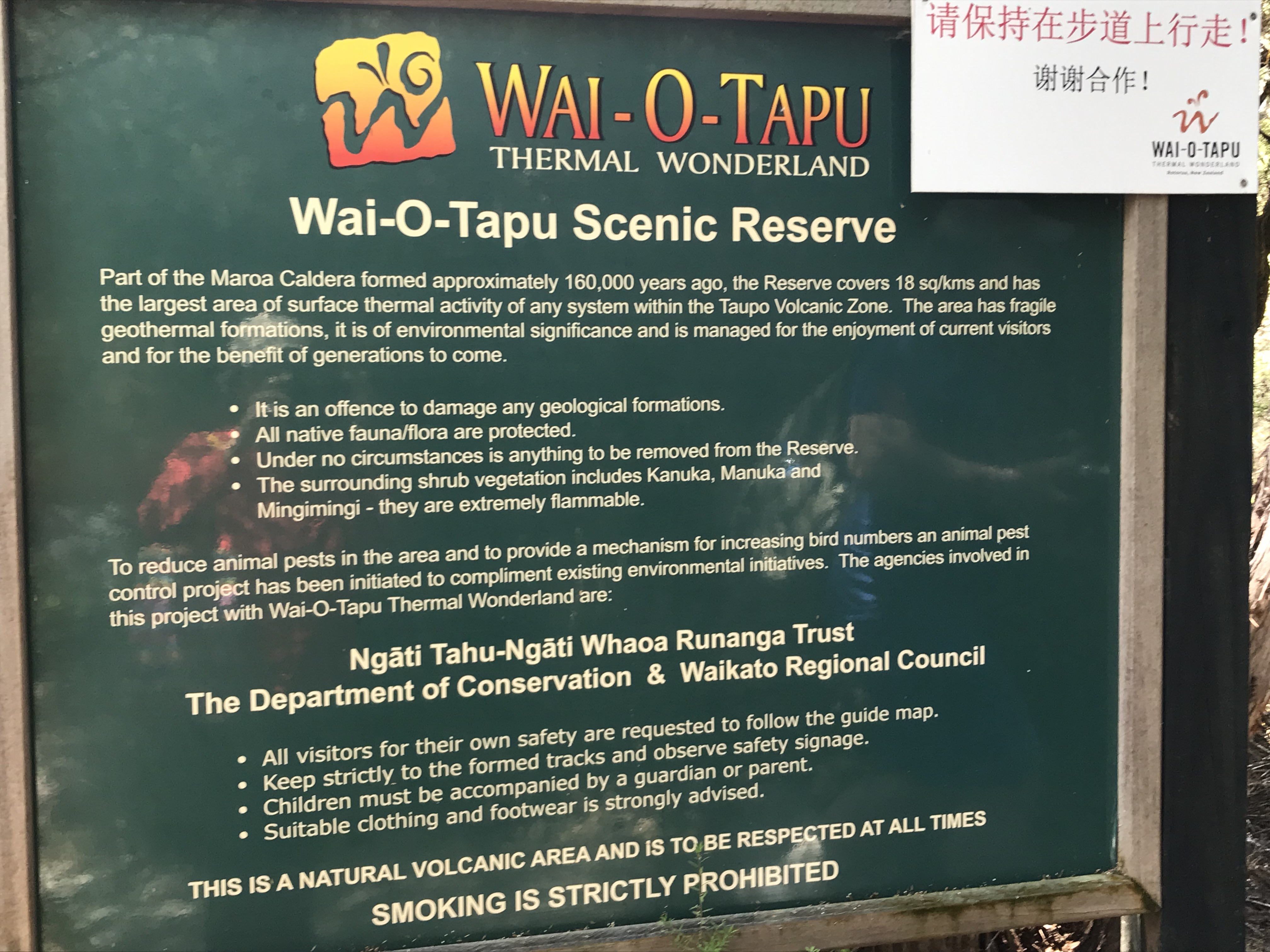 Wai-O-Tapu é parte da Reserva Cênica e possui a maior área de superfície de atividade termal vulcânica da região de Taipo.