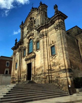 Matera é definitivamente um destino onde você pode conhecer quase tudo a pé. O seu centro histórico é recheado de igrejas (Catedral, Igreja do Purgatório, Madona Del Carmine, Sant´Agostino, San Domenico, São Francesco d´Assisi, dentre outras, sendo algumas rupestres (San Pietro Barisano, Santa Maria Armenia, Santa Lucia alle Malve, San Giuliano, dentre outras).