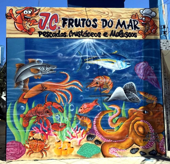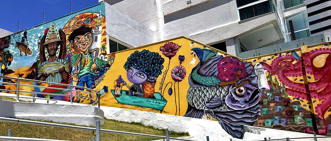 Se você caminhar ou mesmo passear de carro em Natal, é possível observar pinturas em muros que chamam atenção, como é o caso do mural pintado no Mercado do Peixe na Ribeira,