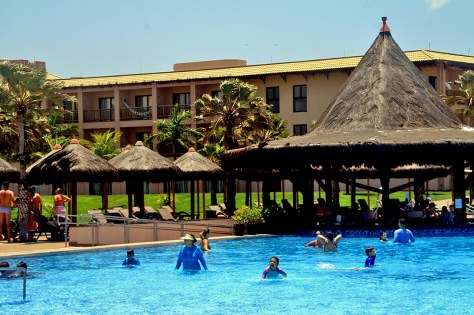 Para quem já frequentou um resort, as características são similares (veja aqui nosso post sobre se hospedar em resorts. São hotéis planejados para grandes quantidades de pessoas, com boas instalações físicas, grandes piscinas, animação e música alta quase o tempo todo, além de opções variadas de entretenimento. No caso do Vila Galé Touros, há duas belas piscinas,