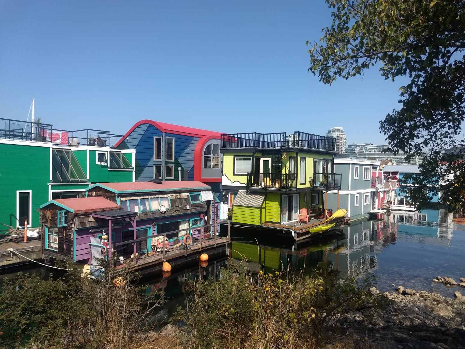 Die Aussicht ist auf farbenfrohe schwimmende Häuser zurückzuführen, von denen einige ständige Bewohner beherbergen.