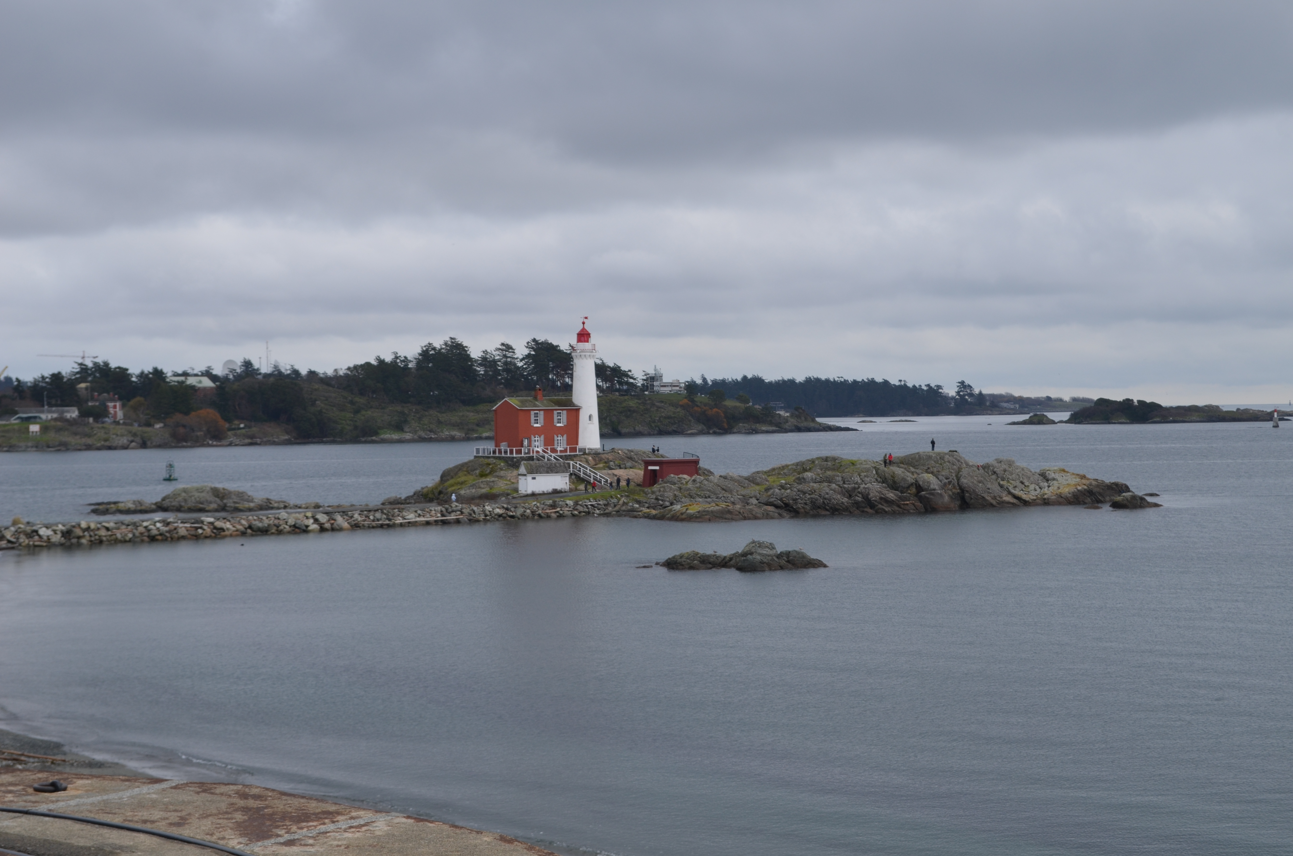 sentar em rochas para descansar e apreciar o mar, até chegar ao Fisgard Lighthouse National Historic Site, primeiro farol da costa oeste do Canadá, com um cenário de tirar o fôlego.