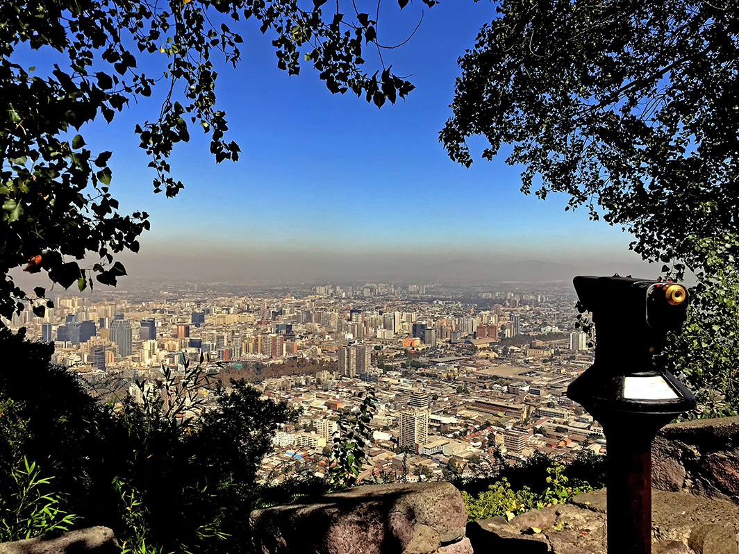 A vista do alto do Morro de São Cristóvão é um dos cartões postais de Santiago, de onde se avista a Cordilheira dos Andes, além das outras montanhas que emolduram a cidade.