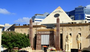 O Wasi Shopping Center foi concebido inspirado no Egito, tem a forma de uma pirâmide e tem faraós sentados nos seus tronos (essa parte me lembra Las Vegas).