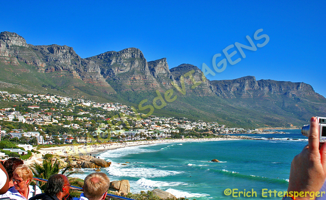 Die Spazierfahrt entlang der Küstenstraße führt weiter nach Hout Bay, wo wir die Berge der Zwölf Apostel sahen. Kapstadt offeriert wirklich beeindruckende Landschaften.