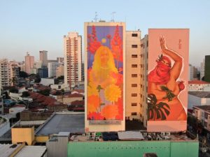 Em São Paulo há diversos murais pintados em paredes cegas de prédios, como os do NoLata Festival Internacional de Arte Urbana que reuniu 15 artistas e produziu belos trabalhos em 3689m² de área no Largo do Batata nesse ano de 2020.