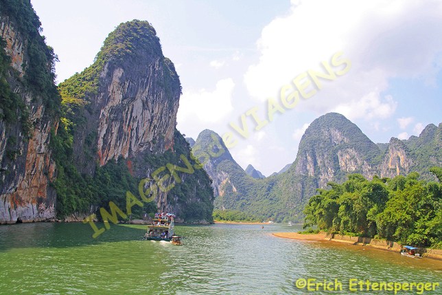 Zona cênica do Rio Lijiang e as montanhas cársticas em Guilin, China