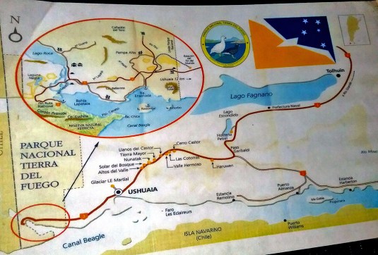 O portão de entrada do Parque Nacional Terra do Fogo é a cidade de Ushuaia, ele fica localizado a 12 km.