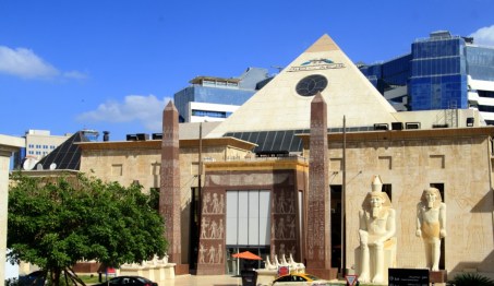 The Wasi Shopping Center was inspired by Egypt, has the shape of a pyramid and pharaohs sit on their thrones (this part reminds me of Las Vegas).