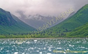 O acesso para muitos lugares é feito somente por navio e avião. Há também pessoas que viajam até o Alasca para verem o fenômeno da Aurora Boreal, que ocorre no período entre o final de agosto e abril . No nosso caso, Erich e eu decidimos por fazer uma viagem de cruzeiro pelo Alasca que durou sete dias, sendo que nessa semana, dois dias foram “cruzeiro cênico”, quando o navio não para em nenhum porto e você navega por lugares fascinantes.Foi no primeiro dia do cruzeiro cênico, que conheci o Glaciar Hubbard.