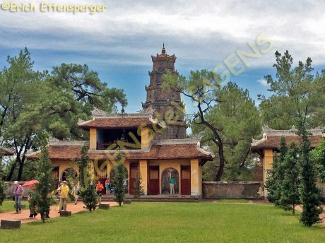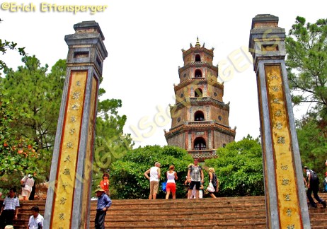 Der nächste Besichtigungspunkt war die sehr schön über dem Fluss Perfume gelegene siebenstufige Pagode Thien Mu.