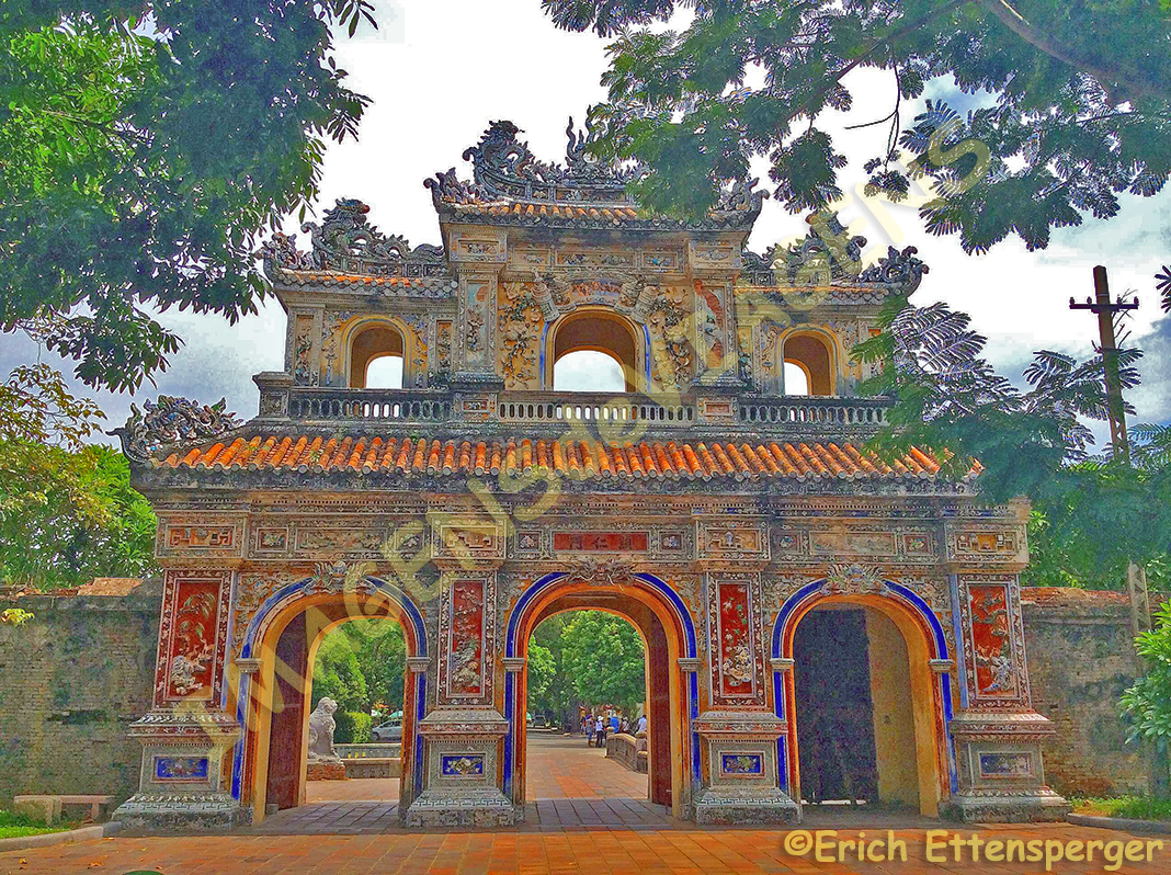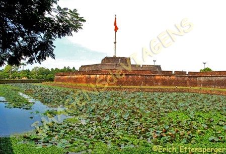 Eine 90 minütige landschaftlich interessante Busfahrt brachte uns von Da Nang nach Hue, der alten kaiserlichen Hauptstadt, UNESCO Weltkulturerbe, um dort zunächst die Kaiserliche Zitadelle, der „Verbotenen Stadt“ Pekings nachempfunden, zu erkunden.