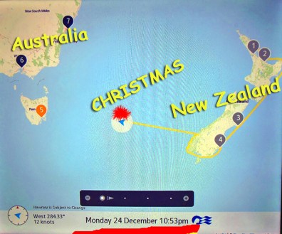 Part 1 möchte nun hier mit dem weihnachtlichen Höhepunkt unserer Reise mitten auf dem Tasmanischen Meer enden…!!!