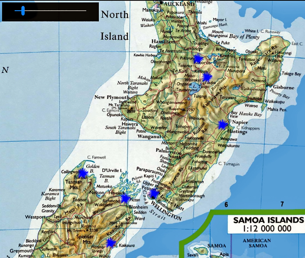 Von der  letztendlich  realisierten Route Wellington – Taupo – Roturoa – Neipier (Cape Kidnappers) – Wellington – Fähre von Wellington nach Picton – Golden Bay – Kaikoura  – Christchurch sollen im Folgenden einige der visuelle Highlights, Impressionen vorgestellt werden.
