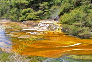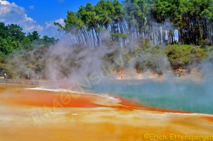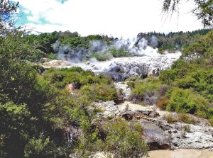 In Rotorua waren wir beeindruckt von den Geysiren und den heissen Quellen, einer der grössten Orte der Erde mit solch geothermischen Aktivitäten am sogenannten Ring des Feuers um den Pazifik gelegen.