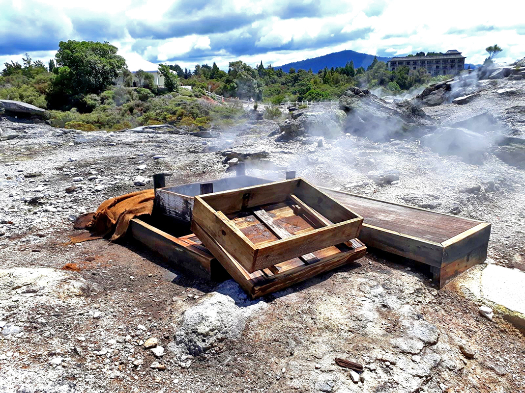 Outro aspecto bem peculiar foi a cocção de alimentos com energia geotermal.