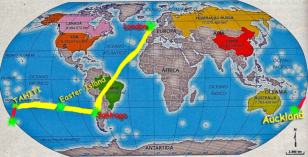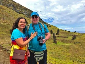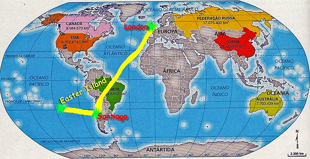 Antes de iniciarmos essa viagem em Londres passamos alguns dias em Munique com amigos e familiares em 2018. De Londres voamos para Santiago no Chile em um voo que durou 15 horas. Descansamos um pouco na capital chilena e de lá seguimos, em um voo que durou 5 horas, para a impressionante Ilha de Páscoa (Rapa Nui) com seus sítios arqueológicos onde se encontram Moais, aquelas esculturas colossais feitas de blocos monolíticos de pedra.