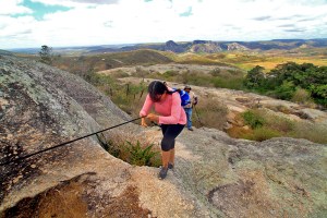 além de ter uma visão deslumbrante da cidade. Tem a trilha da Pedra do Empurrão, outra formação rochosa espetacular. Tem a Pedra do Sino, que ao batermos nela emite um som que parece com uma badalada de um sino…