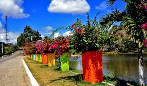 Erich e eu já havíamos visitado a Serra de São Bento para captar imagens para nosso Guia das Belezas do Rio Grande do Norte (que já se encontra na sua 2ª. edição). Retornamos para passar um final de semana e rever as belezas da região. A subida da serra está florida, foram plantadas Buganvílias avermelhadas, que dão um charme especial ao caminho. Quando você chega na sede do município há também muitas dessas espécies vegetais floridas ao lado do lago Valdemar Carolino.