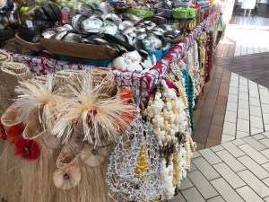 Wer Papeete besucht macht immer einen Spaziergang in der  städtischen Markthalle mit seinen farbenprächtigen Verkaufsständen, an denen die berühmten Blumengirlanden neben Obst, Fleisch und Kunsthandwerk verkauft werden.