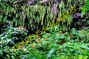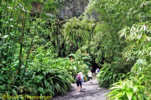 the water gardens (Jardins D’Eau) and the caves of Maraa. There are three, Poiri, meaning the grotto of the dark water. On this tour I was enchanted by the lush vegetation, with all the flowers the island is very green and it rains almost every day.